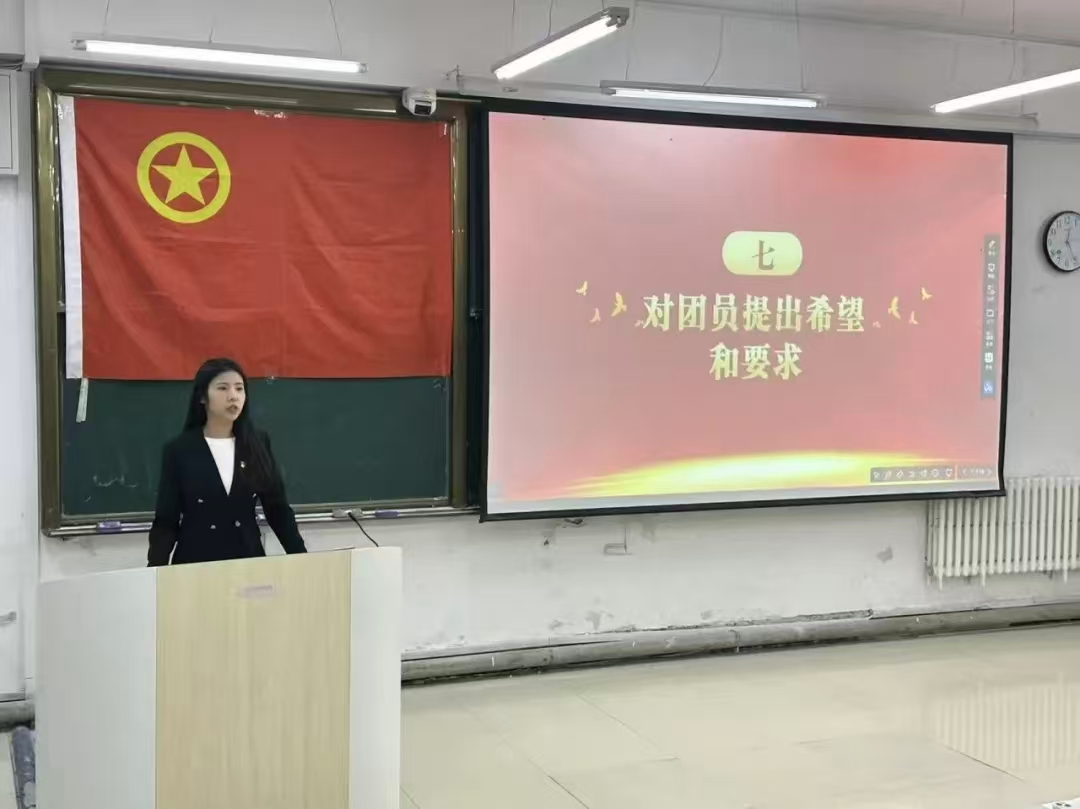 辅导员宗雅娜向参加入团仪式的新团员表示热烈的祝贺,并对新团员提出希望与要求。希望大家牢记入团初心,以团员的标准严格要求自己,既要做知识学习的‘排头兵’,也要做品德修养的‘先行者’,把个人理想融入国家发展,让青春在为祖国、为人民的奉献中绽放光彩。