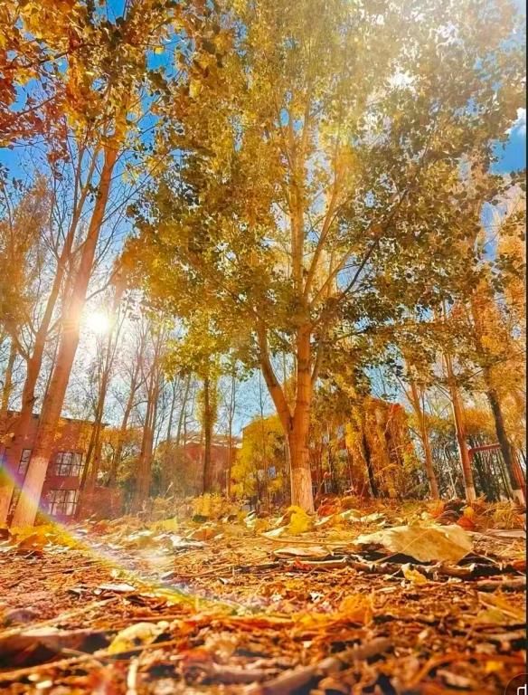 活动现场,青年团员们化身 “节气摄影师”,带着相机、手机穿梭于校园的林荫道。霜降时节的校园,枫叶染成金黄,缀满枝头,草丛间凝结的薄霜晶莹剔透,这些独特的秋日元素都成为团员们镜头下的珍贵素材。大家或蹲身捕捉草叶上的霜花特写,或登高拍摄整片树林的秋日全景,或巧妙构图将校园建筑与秋景相融,用不同的拍摄角度与光影技巧,展现对霜降节气的理解与感悟。活动过程中,团员们还相互交流拍摄经验,分享发现的美景,在轻松愉快的氛围中增进彼此的情谊,也加深了对传统节气文化的认知。