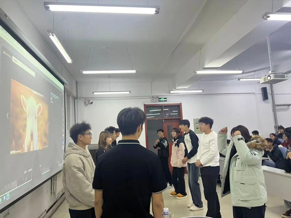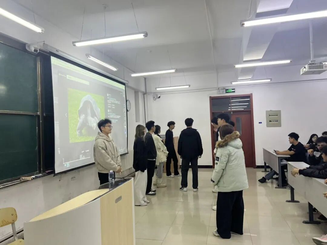 活动现场,学生会工作人员将参与学生分组后,通过投影展示“动物”“体育项目”等主题题目,各小组选手围绕屏幕交替作画、抢答竞猜:既有作画者以简笔精准还原“乌龟”“小猪”等形象的巧妙构思,也有猜题者因抽象画作引发趣味误解的欢乐瞬间,教室里不时响起欢笑与喝彩。同学们共同沉浸于这场趣味盎然的脑力与默契比拼中。