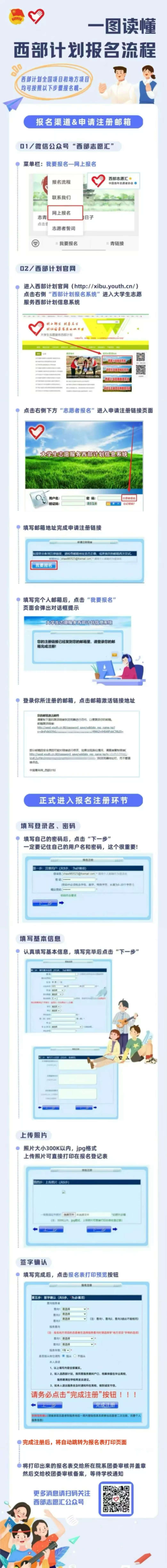 3月1日起至5月上旬,2025年普通高等学校应届毕业生或在读研究生,可通过微信公众号“西部志愿汇”(菜单栏中的“我要报名”)或登录西部计划官方网站(http://xibu.youth.cn),在西部计划报名系统中进行注册报名