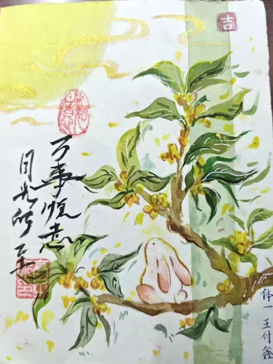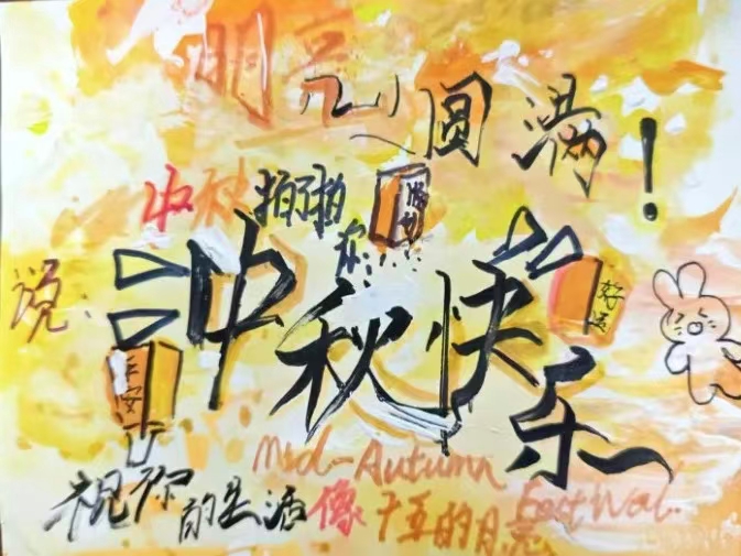 此次参评的手抄报作品构思巧妙,异彩纷呈。作品中,有的以国风笔触绘就桂树玉兔图,金黄花簇、萌兔枝间卧,搭配“万事顺意”的题字与传统印章,将中秋桂香与祈福意蕴凝于纸面;有的以大气书法写“中秋佳节”,孔明灯、星月环绕,诗句晕染出佳节浪漫;还有的用热烈橙黄铺展画面,艺术字与萌趣元素碰撞,在“中秋快乐”的祝福里迸发青春活力……创作者们从传统符号、色彩意境、文字表达等多个维度大胆创新,充分体现了金年会jinnianhuicom学子对中秋文化的多元解读与创意巧思。