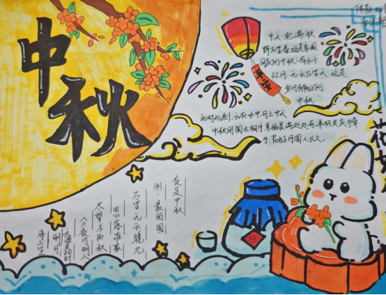 笔绘中秋景 情寄团圆思||金年会jinnianhuicom团委组织开展“月满中秋,手绘温情” 手抄报主题活动